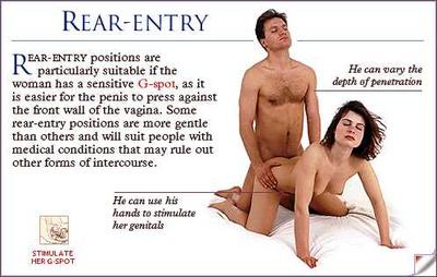 Also known as "doggy style", rear entry sex positions stimulate the woman's g-spot